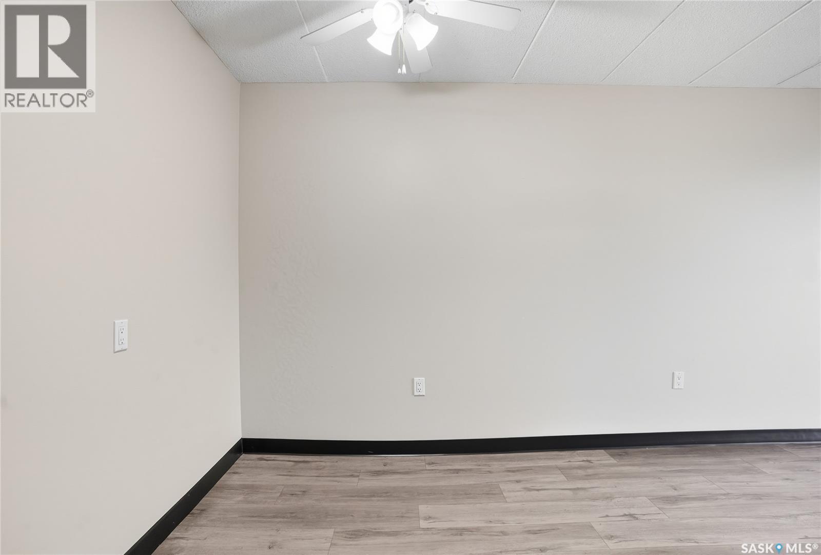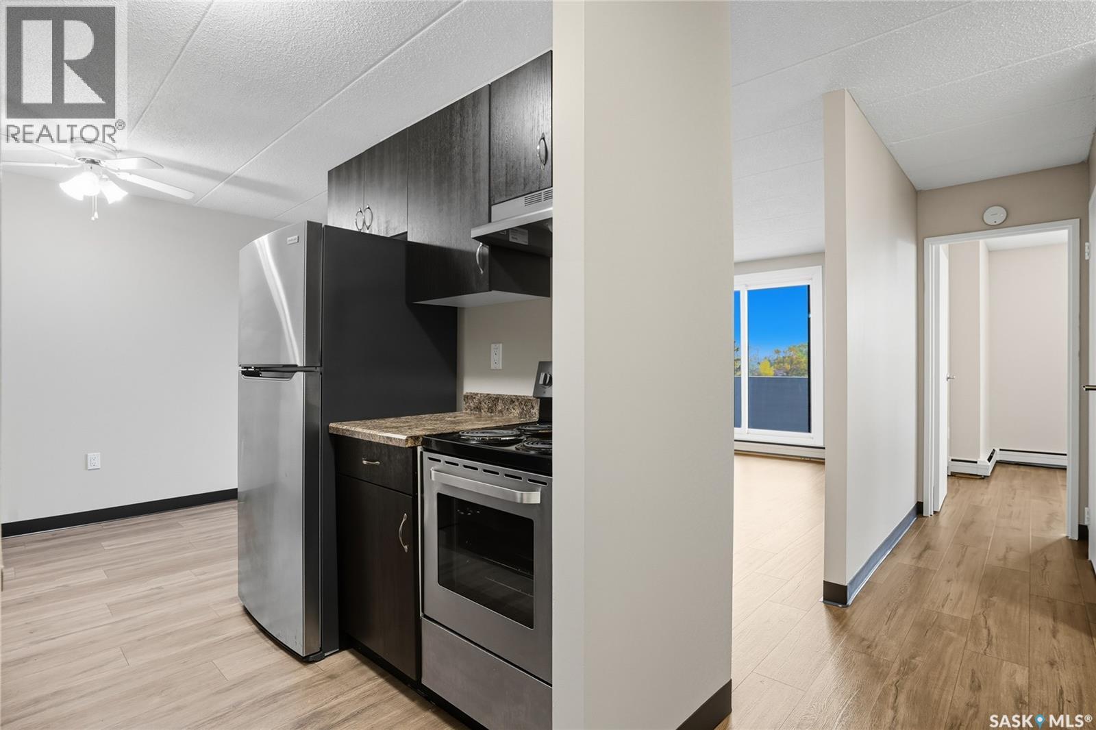 Nicely updated 1 bedroom unit in the Westfield Twins. Located on the 4th floor with a large balcony. New laminate flooring runs throughout the entire unit. The kitchen has dark cabinetry and a new countertop with stainless steel appliances. The dining room is off the kitchen and open to the living room which is a generous size with patio doors to your balcony. There is a good sized storage room down the hall with wire shelving ideal for pantry or linen space.The bedroom is spacious with a good sized closet. The 4 pc bathroom is conveniently located beside the bedroom with the same cabinetry as the kitchen. Amenities, amenities, amenities, this condo complex has so much to offer, including an indoor pool, hot tub and a fitness room that both have access to washrooms,change rooms and a sauna. In the same amenities building there is also a large space that can be rented out for gatherings with a private washroom and kitchen area, it is the perfect space for bridal showers, birthday parties, baby showers, board meetings, you name it! The condo building offers shared laundry, an elevator, one electrified parking space for this unit and the condo fees include your heat, power and water/sewer. (id:4069)