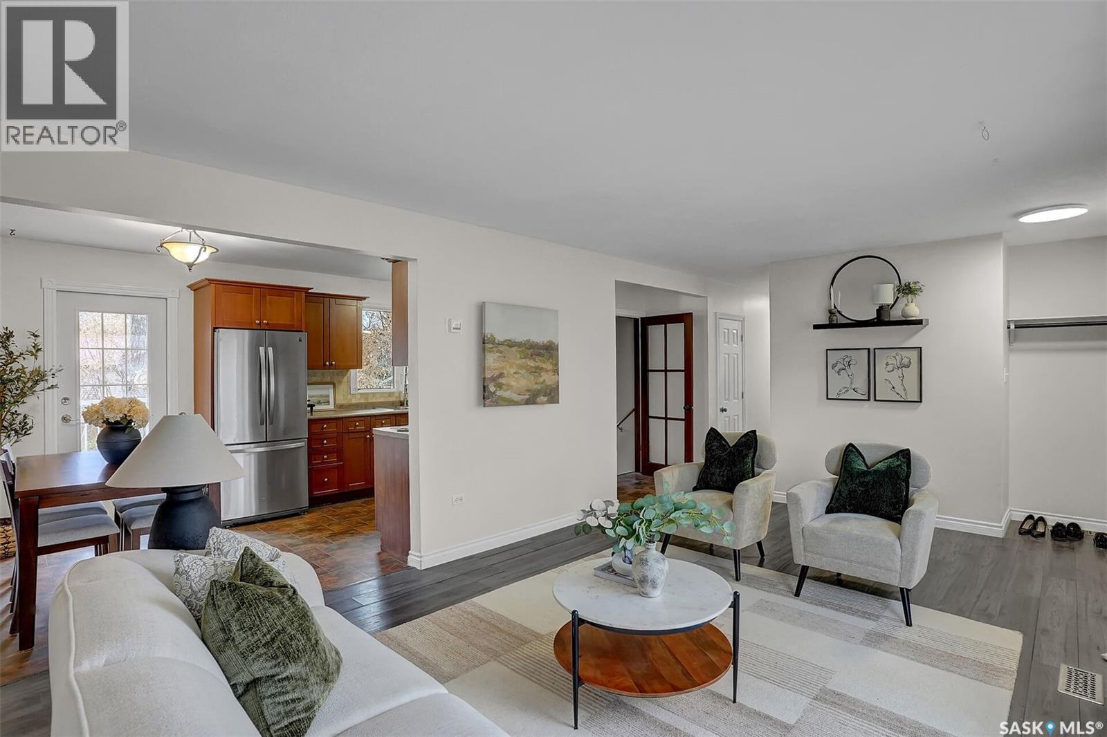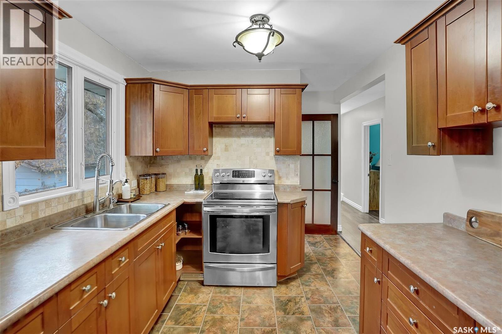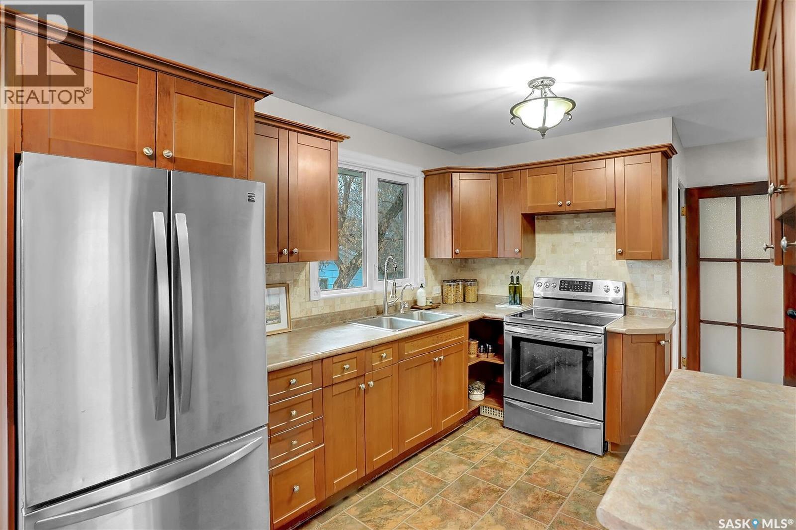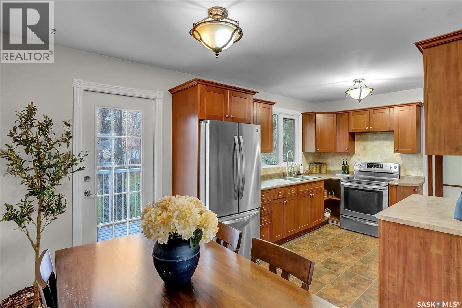 Welcome to 185 2nd Ave in the charming town of Lumsden — a 1,012 sq. ft. family home perfectly situated on a large corner lot across from the schools, making it ideal for growing families. The main floor features a spacious living room with laminate flooring that flows through much of the home. The updated kitchen offers modern cabinetry, stainless steel appliances, a tiled backsplash, and plenty of counter and storage space. Adjacent to the kitchen is a bright dining area with patio doors leading to your deck, perfect for enjoying outdoor meals or watching the kids play. Down the hall are three comfortable bedrooms and a four-piece bathroom conveniently located between them. The lower level boasts a newer foundation with tall ceilings, providing a solid and bright living space. Here you’ll find a large family room, a fourth bedroom, a three-piece bathroom, and a utility/laundry room with ample storage. Outside, the generous corner lot provides plenty of yard space for kids, pets, or entertaining, along with abundant parking. This home combines comfort, updates, and an unbeatable location in one of the most sought-after communities in the valley. (id:4069)