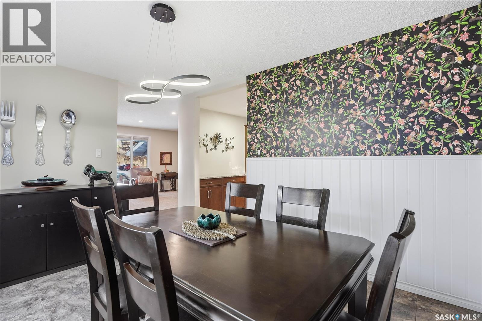 Perfectly located in Regina’s sought-after Albert Park neighbourhood, this exceptional family home is within walking distance to elementary schools and directly across the street from the South Leisure Centre, spray park, and Optimist skating rink—a dream location for active families. This 1,913 sq. ft. two-storey split offers 4 bedrooms, 3 bathrooms, and a double attached garage, with all four bedrooms conveniently located on the second level. The inviting main floor features a spacious entryway and a large formal living room highlighted by a stunning feature wall. The beautifully renovated kitchen showcases new cabinetry, granite countertops, and a tiled backsplash, with a window overlooking the backyard and outdoor pool. Adjacent to the kitchen, the dining room stands out with elegant wainscoting, playful wallpaper, and a striking light fixture—perfect for entertaining. The cozy family room includes a built-in entertainment centre and patio doors leading to the backyard oasis. Completing the main floor are a 2-piece bathroom, laundry area, and direct access to the garage. A striking curved staircase leads upstairs to four generously sized bedrooms and a 4-piece bathroom. The primary bedroom offers a walk-in closet and private 2-piece ensuite. The basement provides additional living space with a recreation room and den, currently used as a home gym. Notable upgrades include two high-efficiency furnaces, on-demand water heater, underground sprinklers, and a new boiler system for the heated outdoor pool. The fully fenced backyard is designed for summer enjoyment, featuring an additional pool fence, patio area, and bar—your own private retreat. This is the perfect place to call home for families looking for space, comfort, and an unbeatable location. (id:4069)