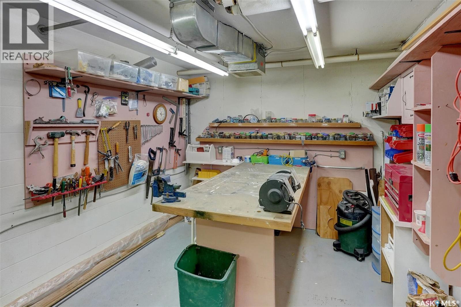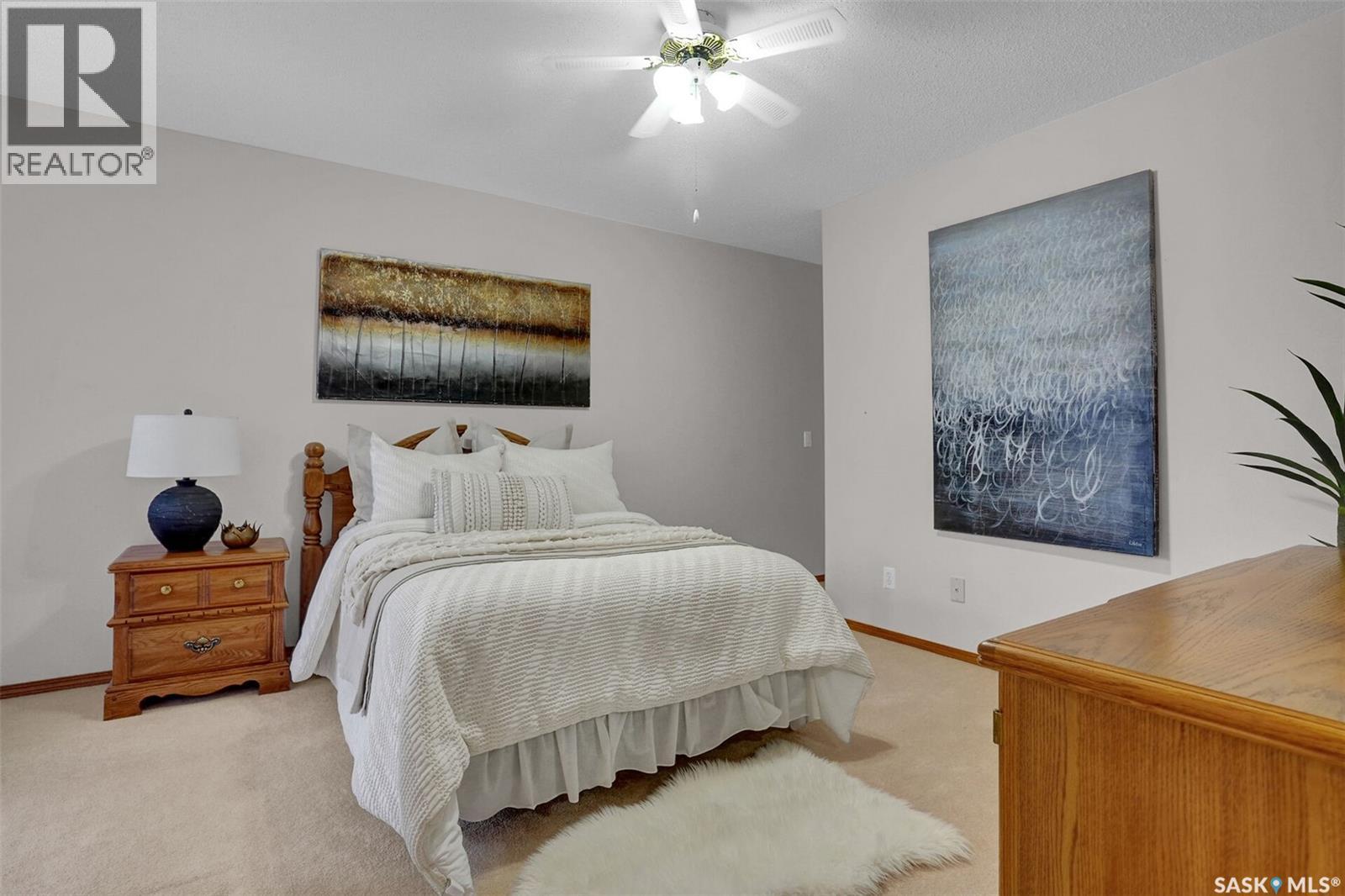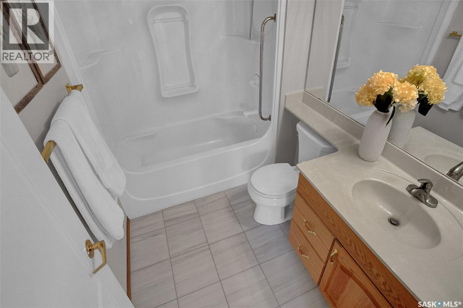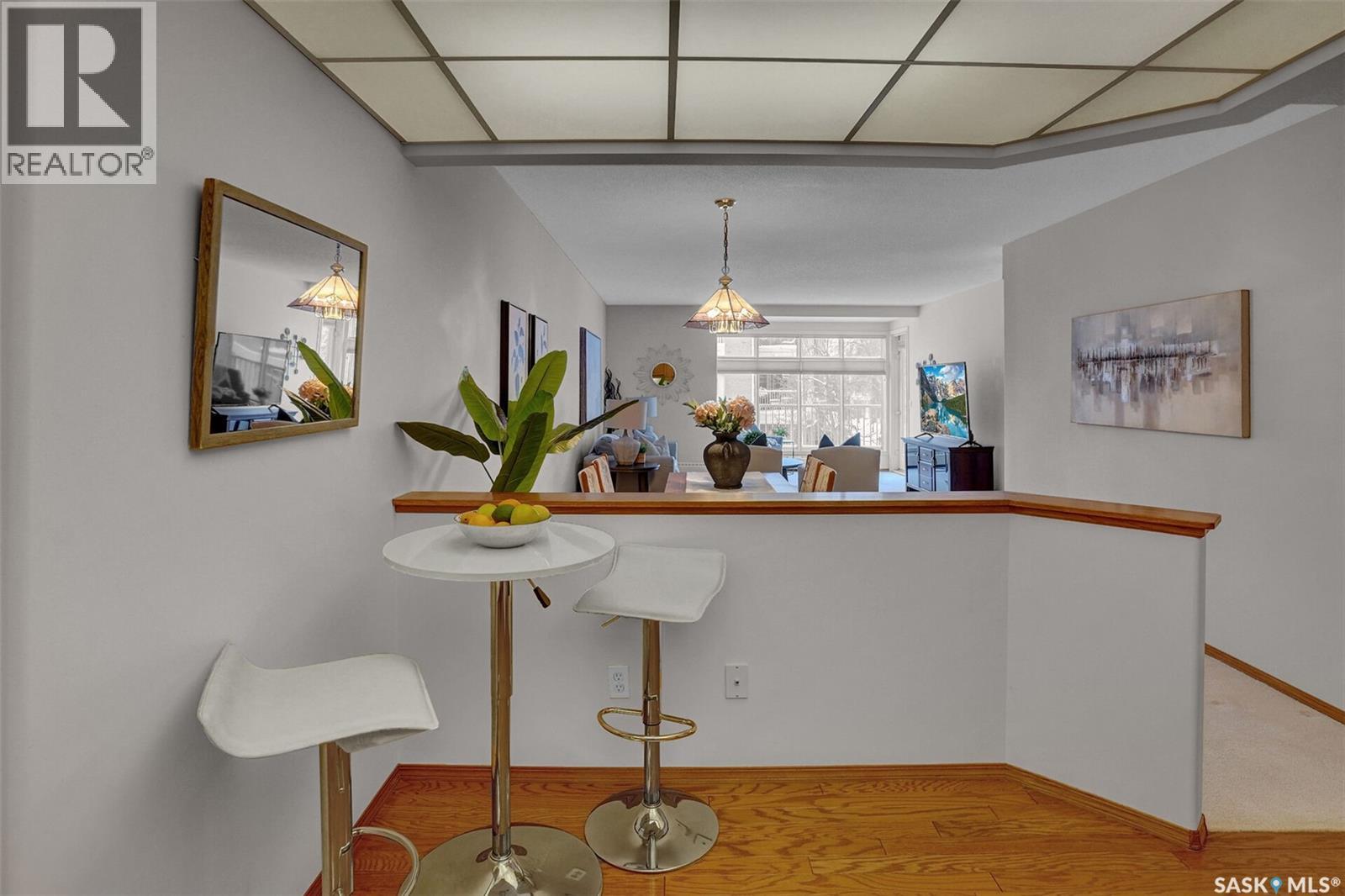 Welcome to this beautifully maintained 1,249 sq ft condo in the prestigious College Gardens complex. Offering 2 bedrooms and 2 bathrooms, this spacious unit combines comfort, functionality, and an unbeatable location directly across from Wascana Park. Filled with natural light, the open-concept living and dining areas are enhanced by a full wall of windows and direct access to your private balcony overlooking peaceful greenspace. The generous dining area easily accommodates large family gatherings, while the oak kitchen is in pristine condition and features a built-in oven and cooktop, tiled backsplash, pantry with pull-out drawers, and a bright eat-in nook. A large front foyer welcomes you into the unit, with a convenient laundry/storage room just off the entrance. The second bedroom is ideally suited as a guest room, home office, or library, with a 4-piece bathroom and linen closet located directly across the hall. The primary bedroom is a true retreat, offering space for a king-sized suite, a cozy reading nook with views of the greenspace, a 6'5" x 5'8" walk-in closet, and a private ensuite complete with a walk-in shower featuring dual seating. Constructed with concrete, this building provides exceptional soundproofing, privacy, and peace of mind. Additional highlights include one heated underground parking stall with a spacious 6'11" x 8'6" storage unit located directly in front of your parking space. Ideally situated with convenient access to downtown, the University of Regina, the airport, and the natural beauty of Wascana Park, this is condo living at its finest. (id:4069)